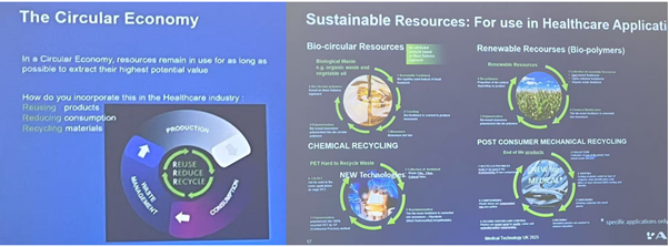 The exhibition also showcased cutting-edge solutions for medical device sustainability, a critical aspect of my research. With a focus on recyclable materials, eco-friendly fabrication processes, and long-term usability, discussions with industry experts provided insights into reducing environmental impact in healthcare applications. A particularly insightful part of the learning program, Plastics & Sustainability in Healthcare: Focus on Design & Development Options, discussed the adoption of biodegradable materials, energy-efficient manufacturing processes, and circular economy approaches in medical device production. However, I also realized that sustainability in healthcare still has a long way to go, as medical materials account for only a small fraction of overall material usage, and much of the effort has yet to become a reality. This awareness reinforced the significance of my research, giving me greater motivation to contribute to this field.